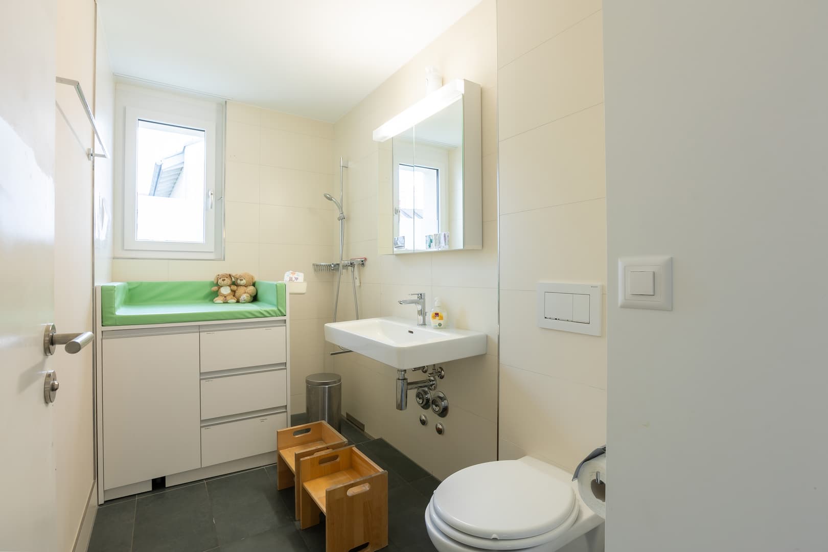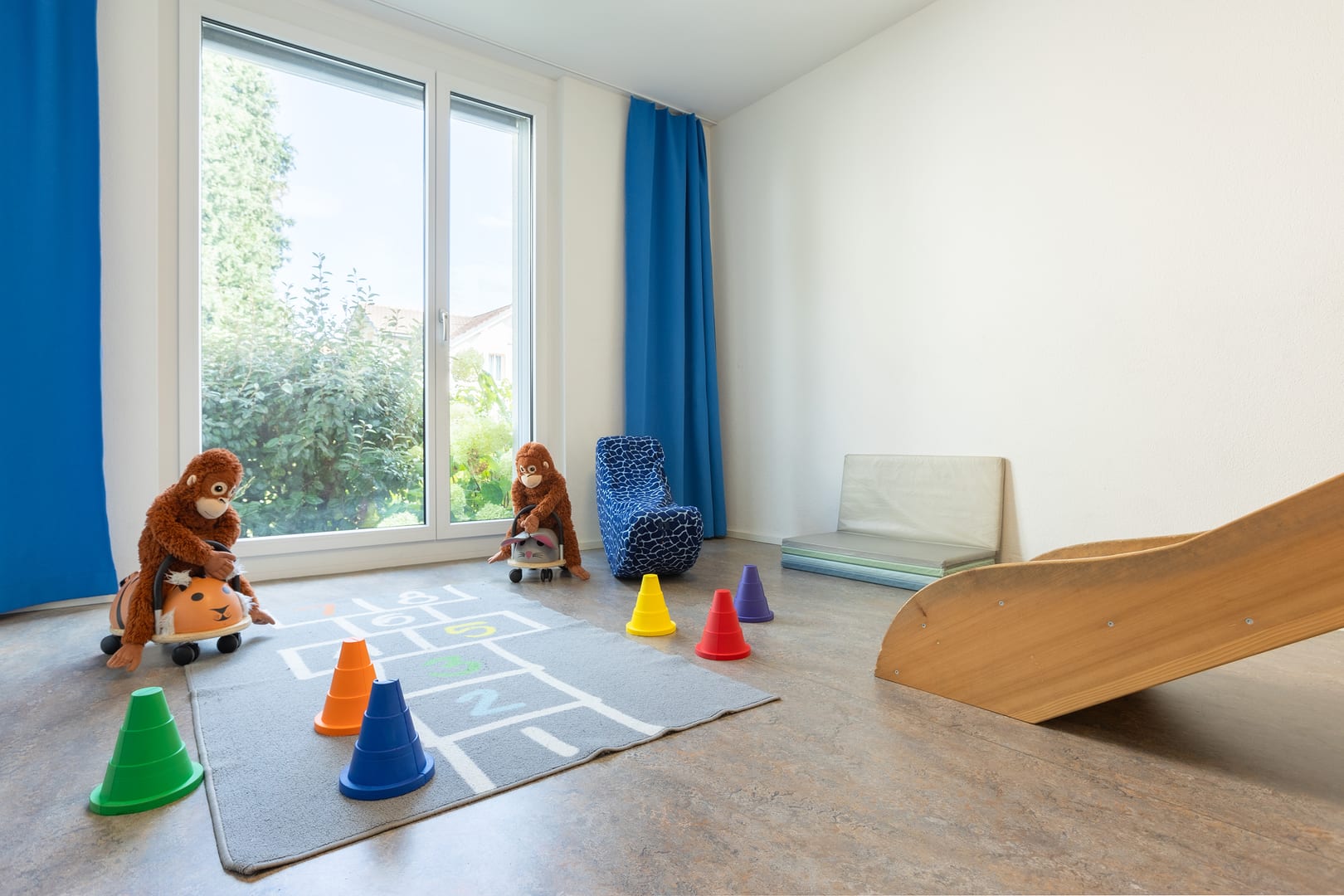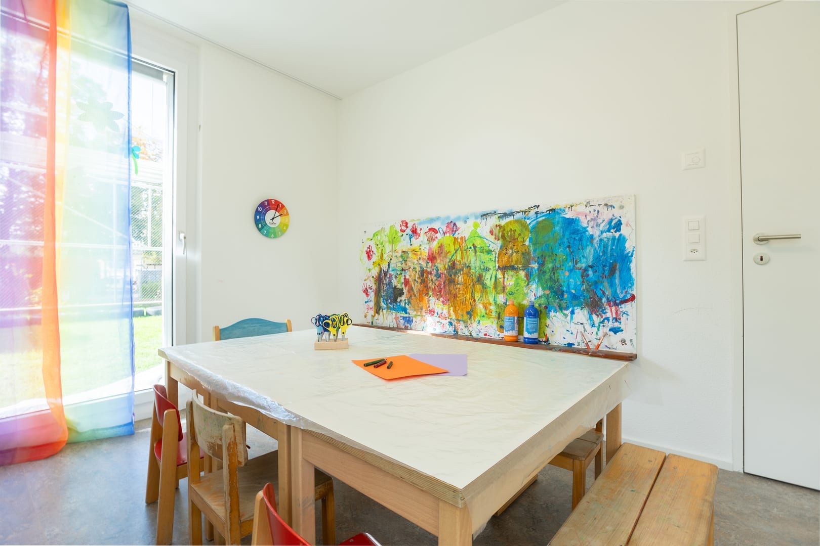 Tanto spazio per scoprire: Il nostro asilo nido può ospitare fino a 26 bambini, ha un giardino e un'area boschiva. Due volte al mese possiamo utilizzare la palestra della scuola. Ogni giorno, la nostra cucina centrale Fiorino Tavola elabora menu equilibrati per bambini a base di ingredienti freschi e regionali.