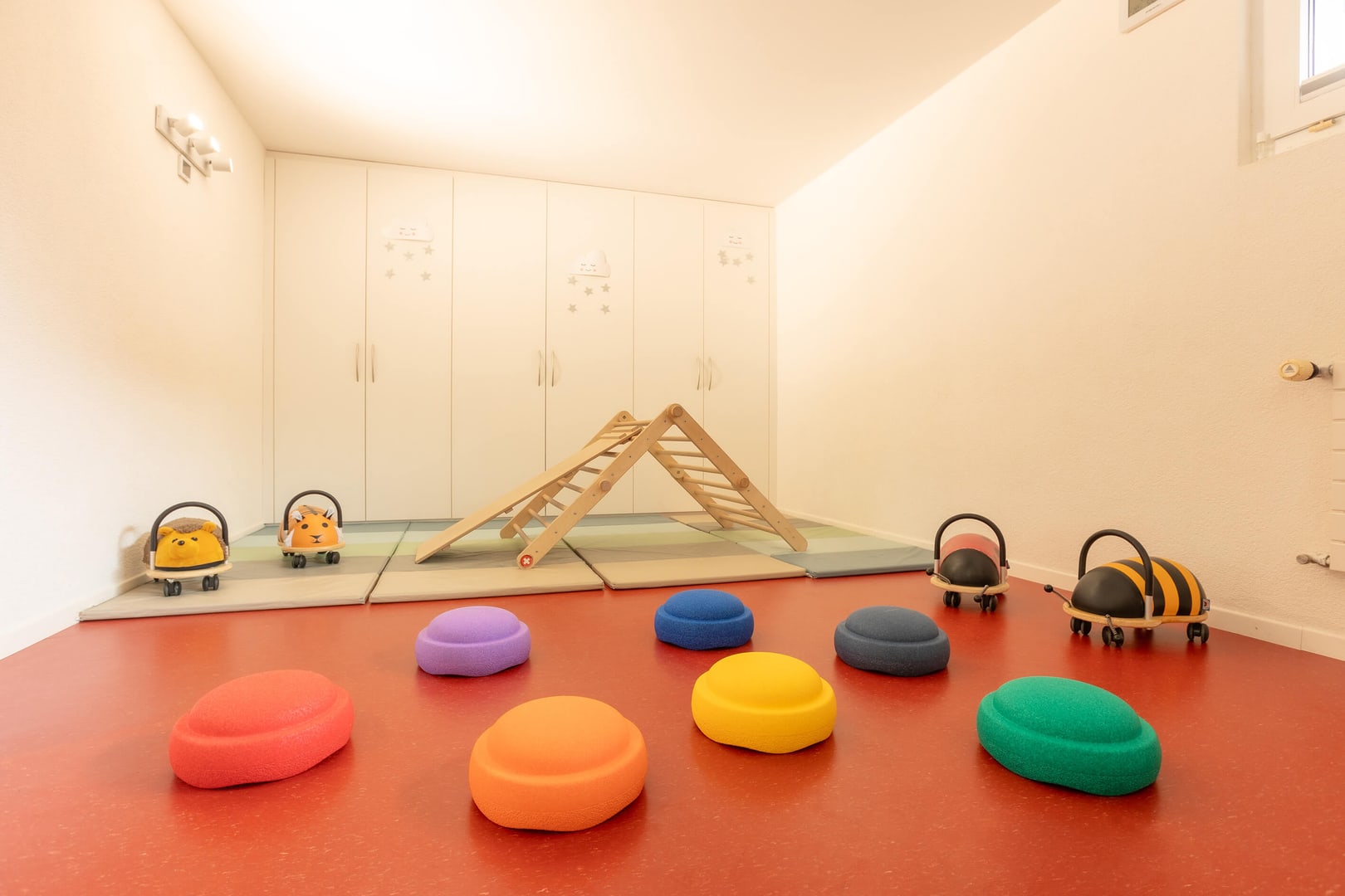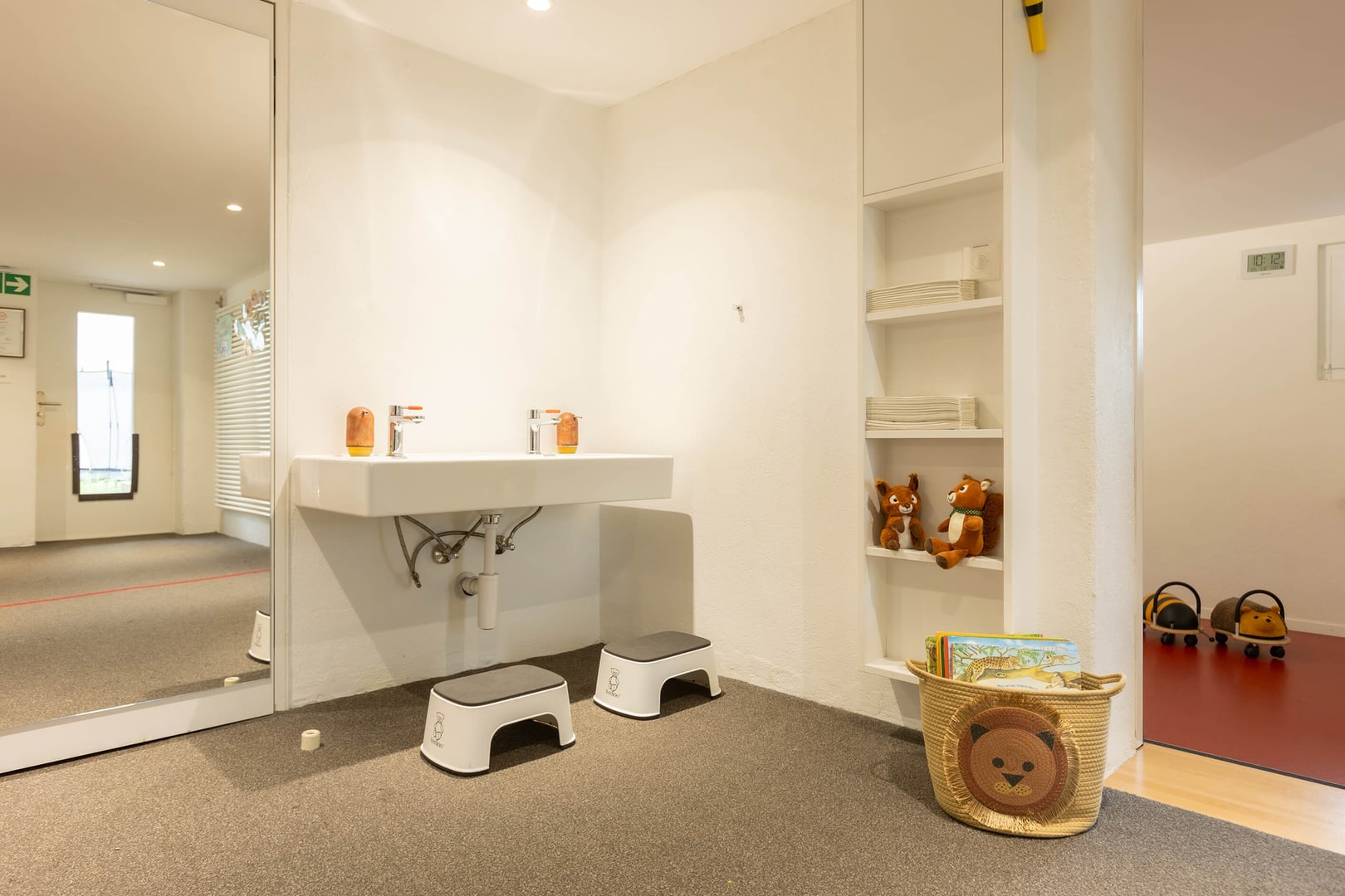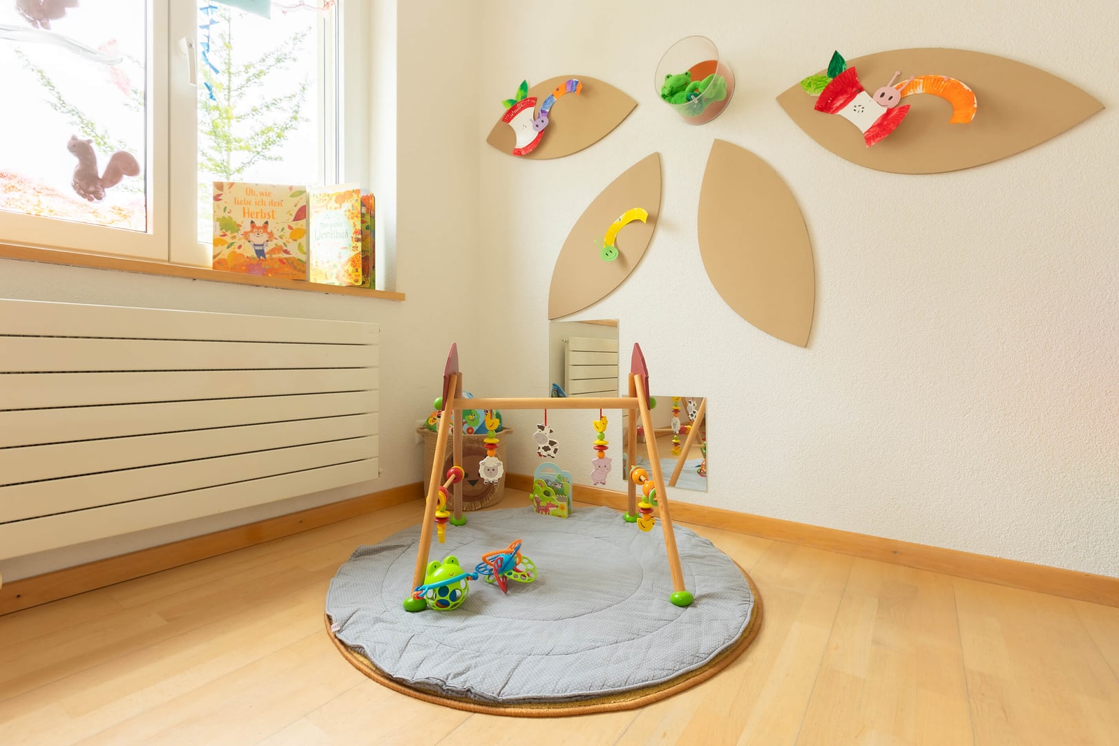 Tanto spazio per scoprire: Il nostro asilo nido ha spazio per un massimo di 26 bambini, un grande giardino e un divanetto nel bosco. Visitiamo la palestra una volta alla settimana e offriamo ai bambini anche attività speciali come lo yoga per bambini. Ogni giorno, la nostra cucina centrale Fiorino Tavola elabora menù equilibrati per bambini a base di ingredienti freschi e regionali.