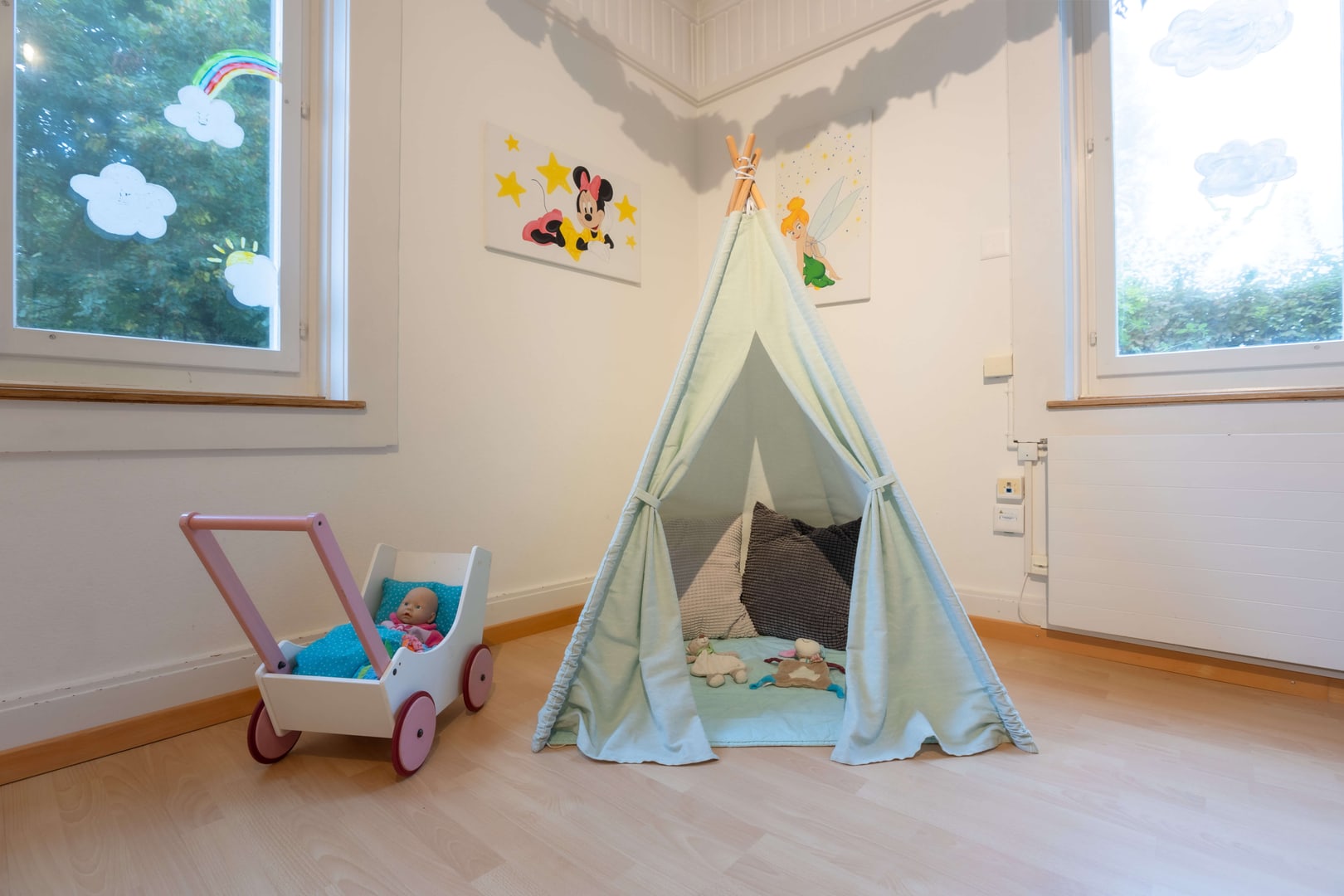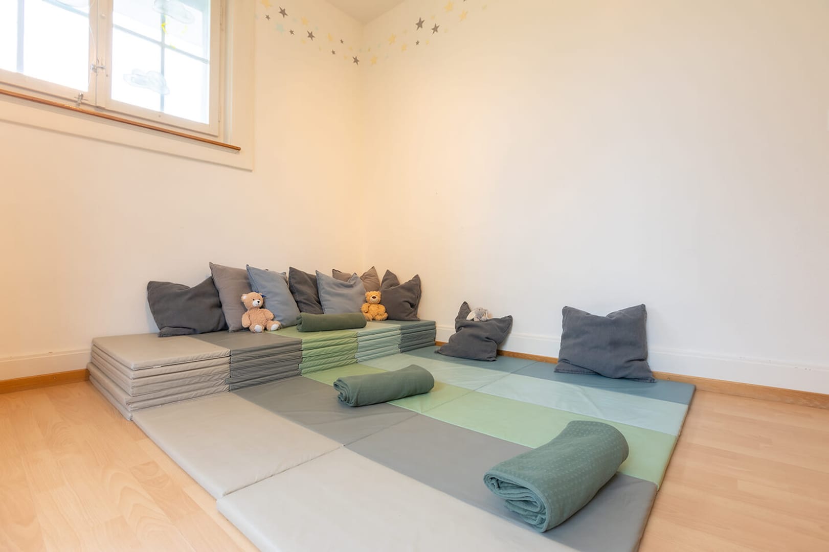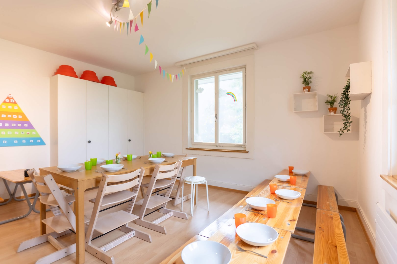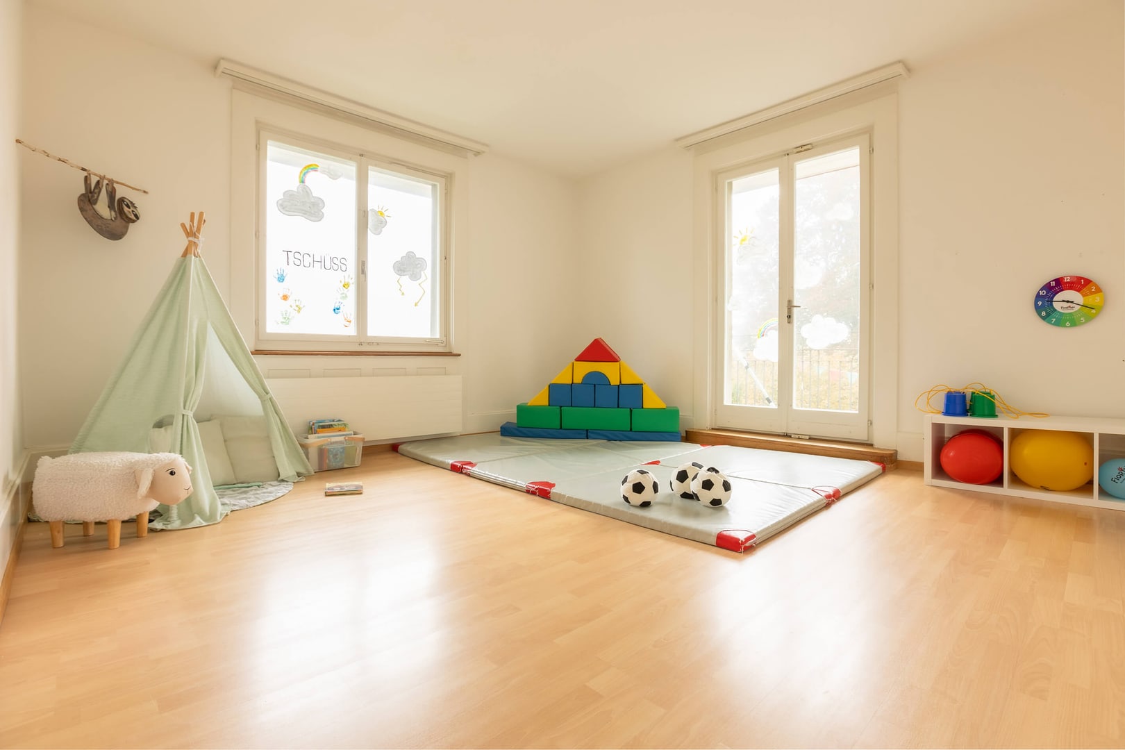 Tanto spazio per scoprire: Il nostro asilo nido può ospitare fino a 30 bambini, dispone di un ampio giardino e ci permette di utilizzare la palestra su base settimanale. Siamo circondati da numerosi parchi giochi, dai Drei Weieren e dai boschi dell'anello verde di San Gallo. Il quartiere di St.Georgen offre opportunità ideali per incoraggiare i bambini a giocare, fantasticare e svolgere molte altre attività in un ambiente gestibile e a misura di bambino. La nostra cucina centrale Fiorino Tavola assicura un'alimentazione sana ed equilibrata, preparando ogni giorno menu freschi per bambini a base di ingredienti regionali.