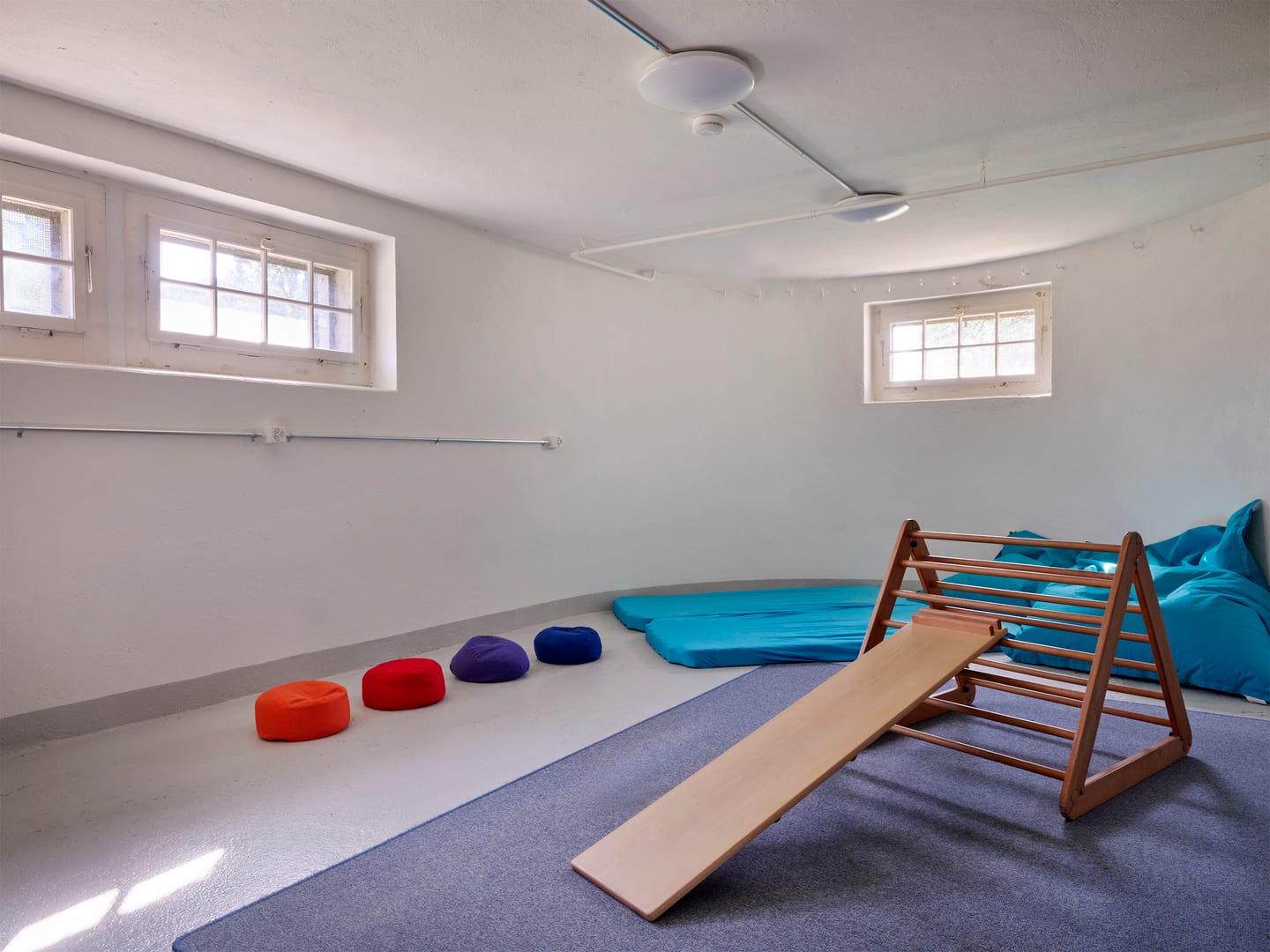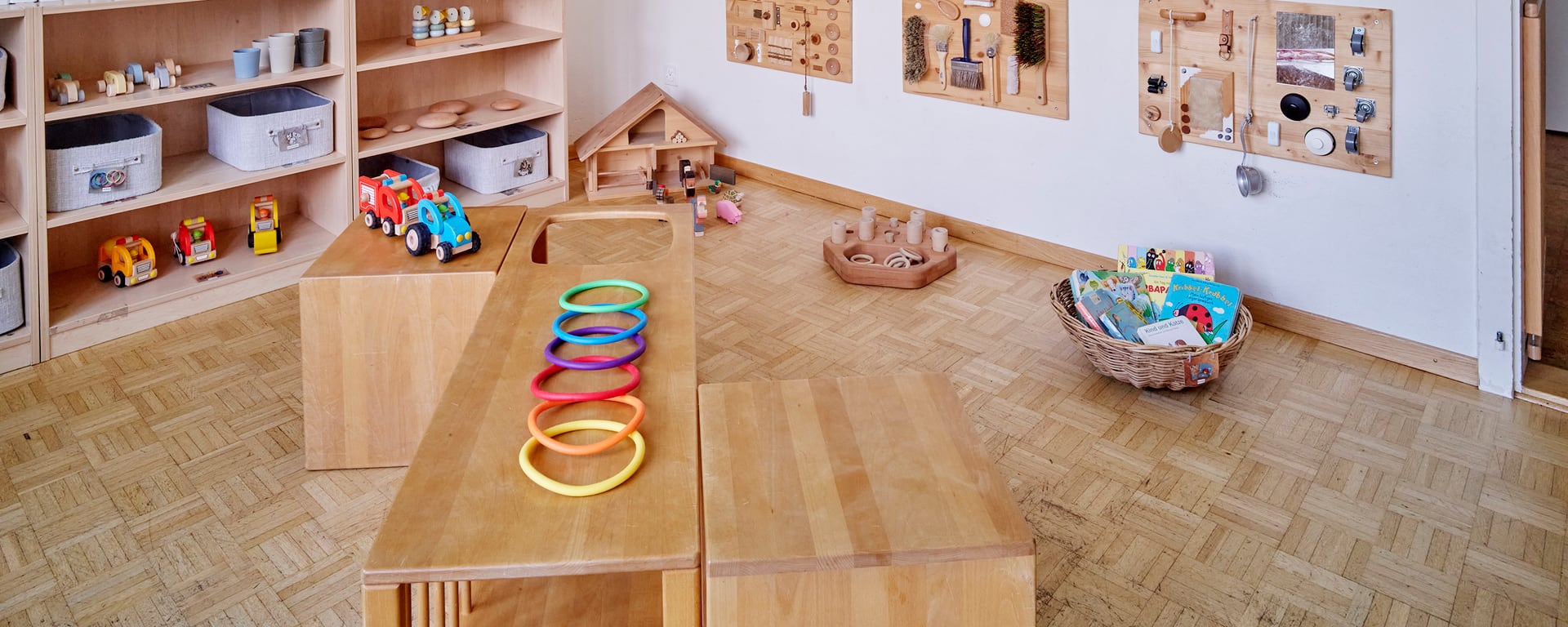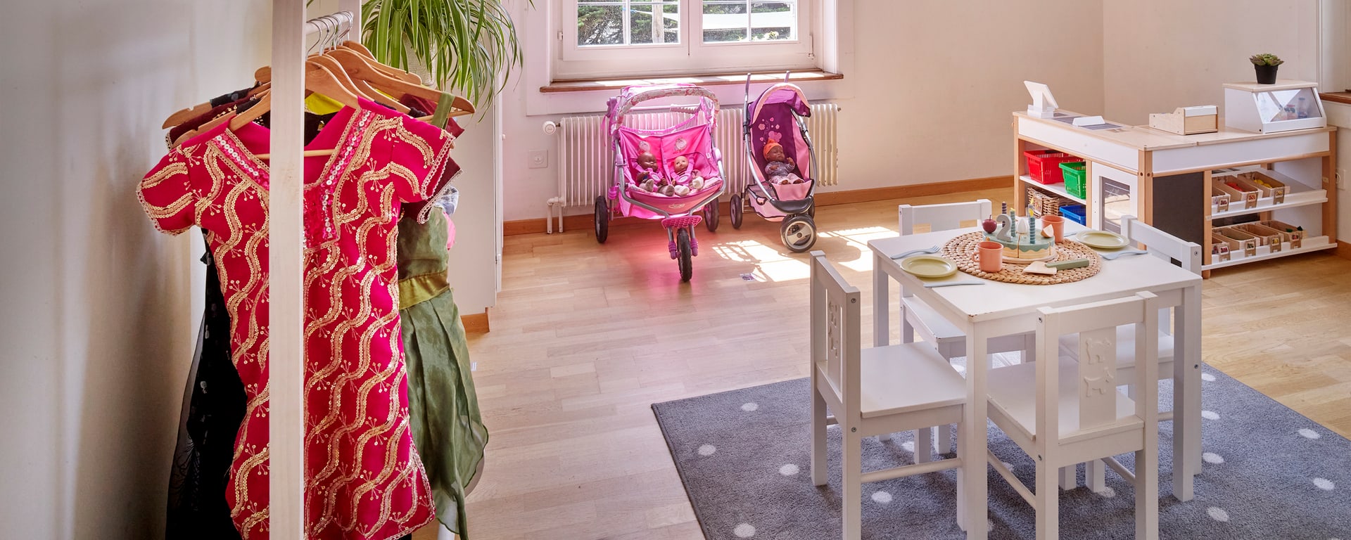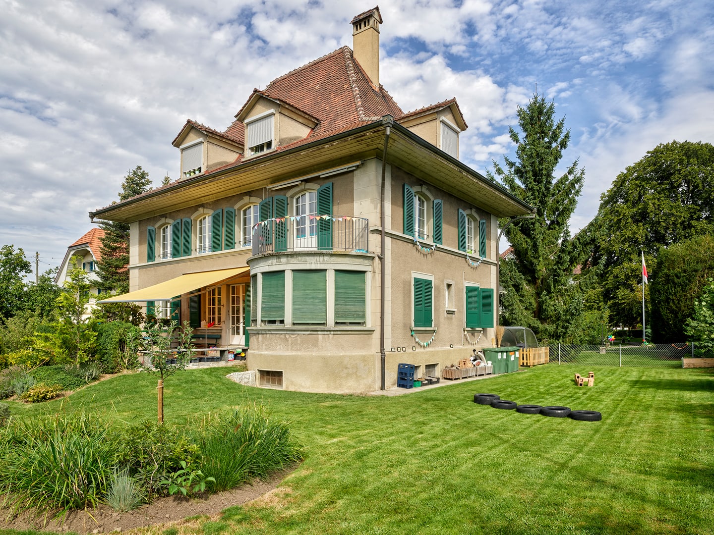 Nell'estate 2019 l'asilo nido Burgergut si è trasferito negli ex appartamenti per anziani: Le stanze della magnifica casa antica sono state ristrutturate per renderle adatte ai bambini, pur mantenendo il fascino dell'antico edificio. Le stanze sono luminose e spaziose e animano la routine quotidiana dell'asilo con spazi educativi arredati con cura: ad esempio, c'è una stanza per il movimento, un atelier, una stanza sensoriale e una stanza per i giochi di ruolo. All'esterno, i bambini, seguiti in due gruppi di età, possono godere di un ampio giardino riparato che si estende intorno all'edificio. Blocchi di legno e vecchi tubi invitano i bambini a costruire da soli e a essere creativi. C'è anche un vecchio tronco d'albero per arrampicarsi, aiuole con fiori e pomodori, una sabbiera e tanti veicoli come trattori e biciclette. L'asilo è situato in posizione centrale e facilmente raggiungibile sia con i mezzi pubblici che in auto. Le escursioni regolari nella vicina foresta offrono avventura e varietà. Oltre all'asilo, il sito Burgergut ospita anche il Burgerheim, una fattoria con animali e un ristorante. Giovani e meno giovani si incontrano qui come un'abitudine. Il dialogo e la cooperazione tra le varie aree e i vari attori del sito Burgergut sono volutamente incoraggiati. Ad esempio, il cibo del ristorante Schüür accanto è fresco, regionale e preparato ogni giorno appositamente per l'asilo nido, con verdure, latte e carne provenienti dalla fattoria Burgergut.