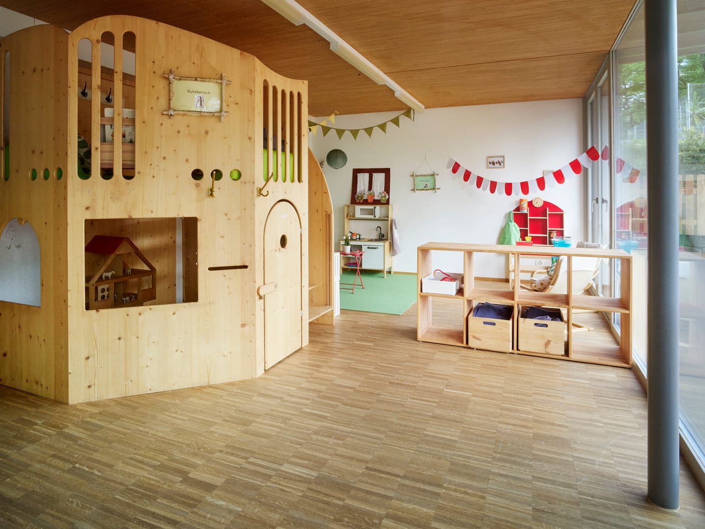 I bambini dell'asilo nido di Dählhölzli si divertono spesso a trascorrere del tempo nella foresta di Dählhölzli: ogni giovedì, da marzo all'autunno, il gruppo delle Betulle trascorre l'intera giornata nella foresta a cinque minuti di cammino. Qui i bambini hanno a disposizione un divano da foresta costruito appositamente per loro, un forno dove cucinare il pranzo, una casetta fatta di rami e tanto spazio per stare, giocare e correre. Vicino alla natura e allo stesso tempo nel centro della città: questo è ciò che caratterizza l'asilo nido Dählhölzli. Si trova nel quartiere di Kirchenfeld, sul terreno del tennis club, proprio accanto al Ka-We-De, allo zoo di Dählhölzli e all'asilo. Non c'è strada, ma solo un sentiero che passa davanti al piccolo asilo a conduzione familiare. I bambini possono piantare e raccogliere da soli l'orto nel giardino. Una sabbiera, uno scivolo, una torre per arrampicarsi e molto altro ancora offrono varietà intorno alla casa.