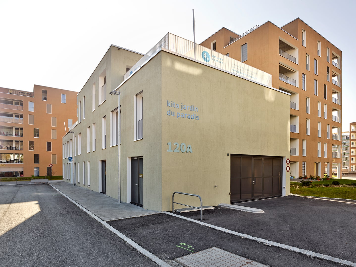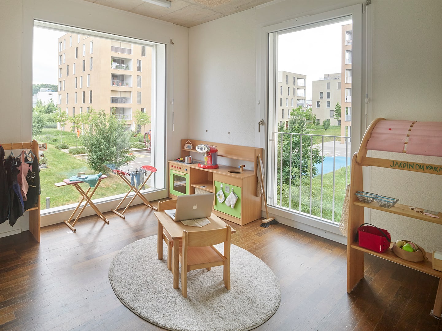 Un ulteriore vantaggio: l'asilo nido Jardin du Paradis è gestito in modo bilingue. Il personale parla ai bambini nella loro lingua madre tedesca o francese. Questo permette loro di imparare un'altra lingua in modo naturale e informale nella vita quotidiana.