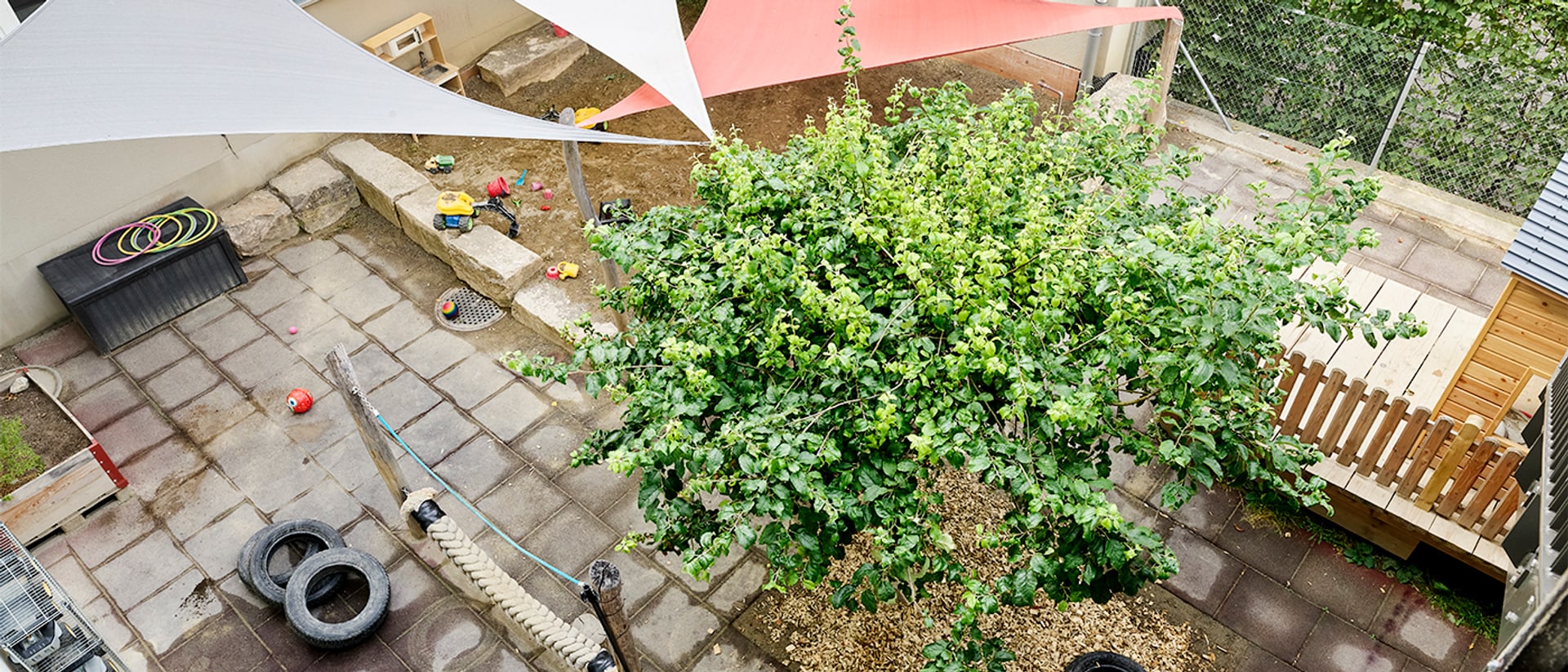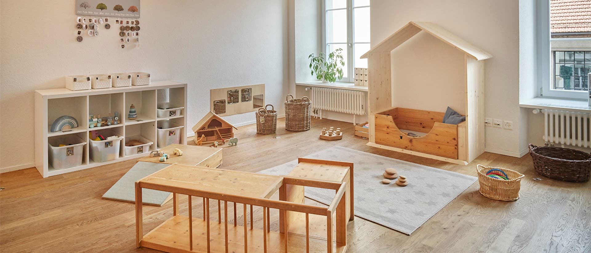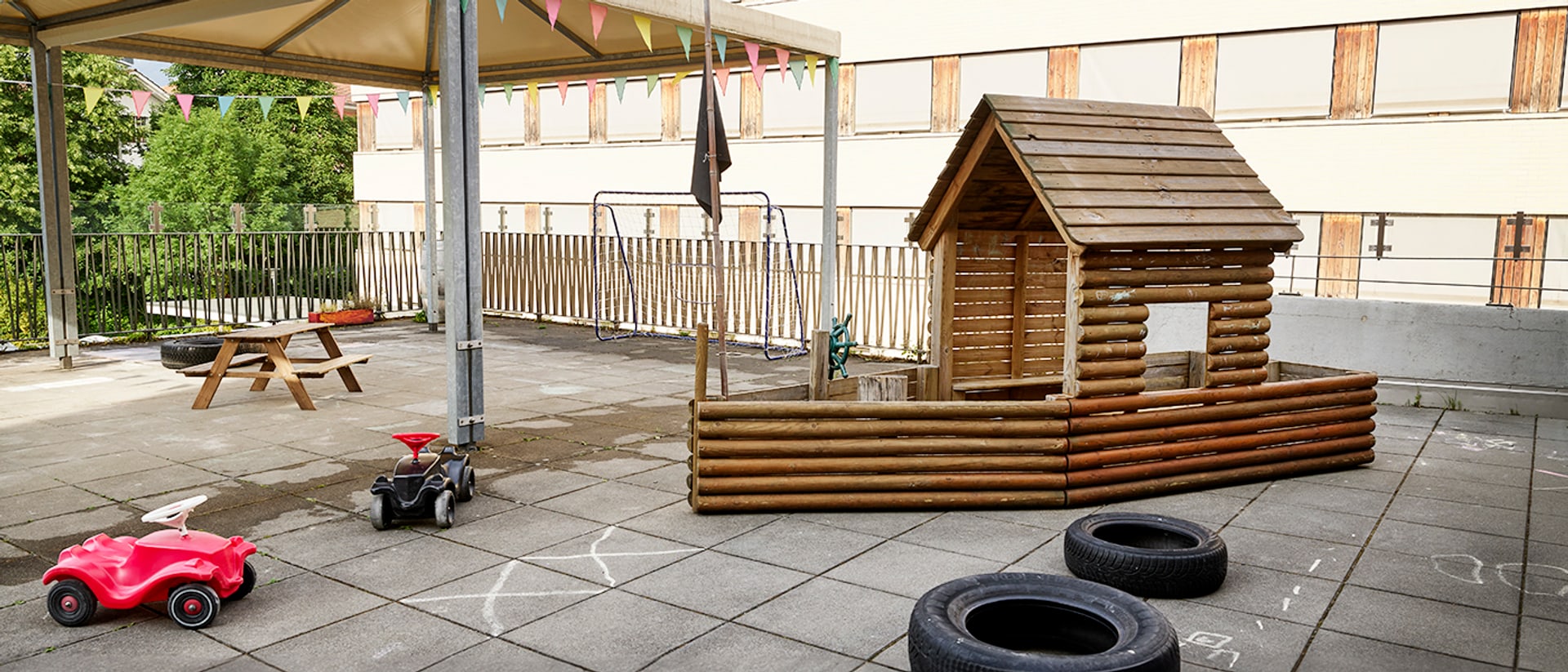 Corridoi tortuosi, nicchie nascoste, una porta qui, un'altra stanza là. Grazie all'armonia dei colori, ci si sente subito a casa. L'edificio, classificato come patrimonio storico, è stato ristrutturato e rimodellato nel 2012 per renderlo adatto ai bambini e agli asili nido. Su tre piani c'è spazio per tre fasce d'età. Il fulcro è l'ampia e versatile stanza in mansarda, dove i bambini possono dare libero sfogo alla loro voglia di muoversi. All'esterno c'è un giardino privato con una grande sabbiera con collegamento all'acqua. La grande terrazza coperta con la nave dei pirati offre spazio per giochi di ruolo e passeggiate in bicicletta. Grazie alla sua posizione centrale, l'asilo è facilmente raggiungibile a piedi, con i mezzi pubblici o in auto.
