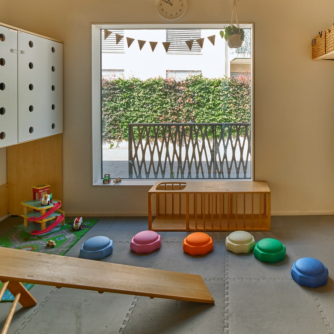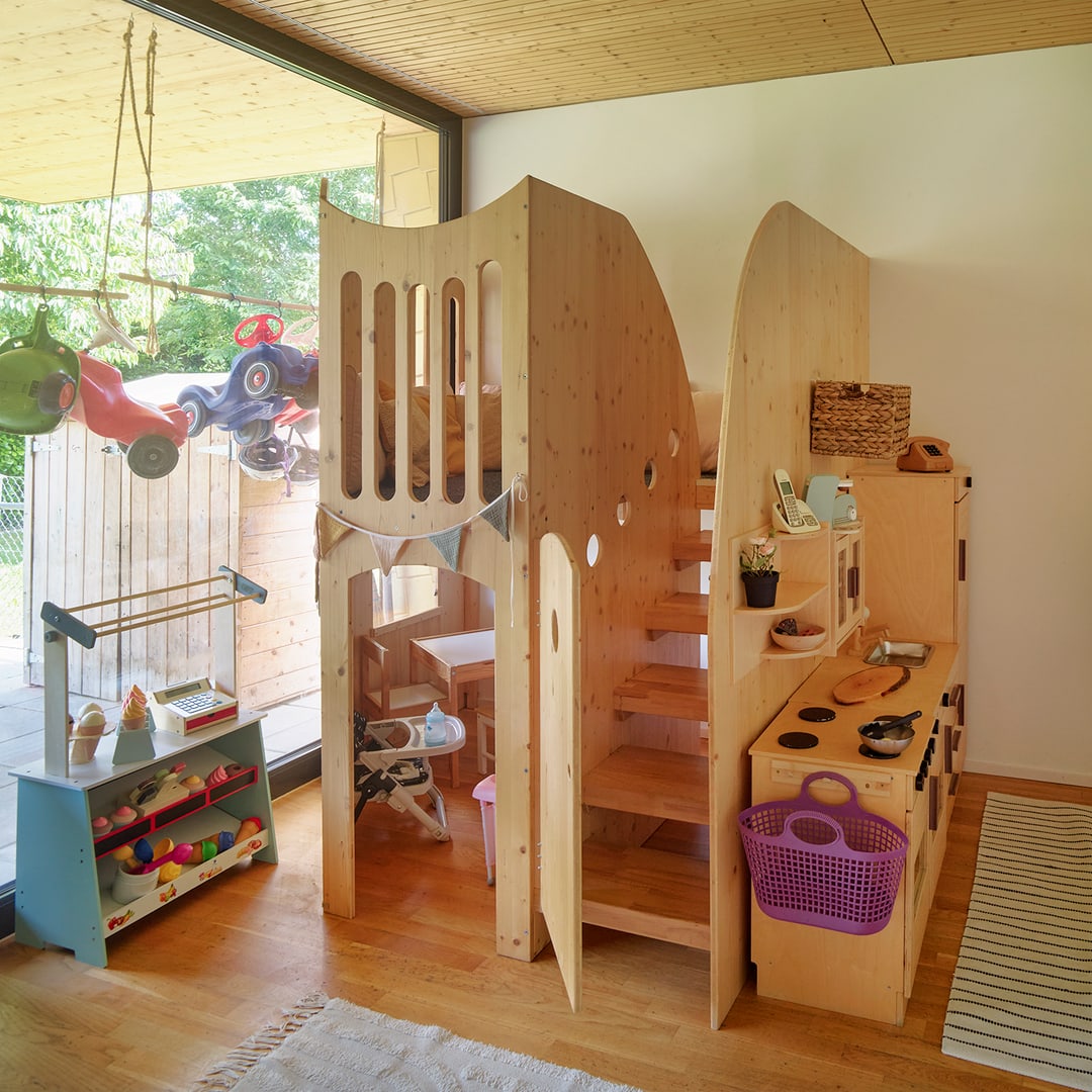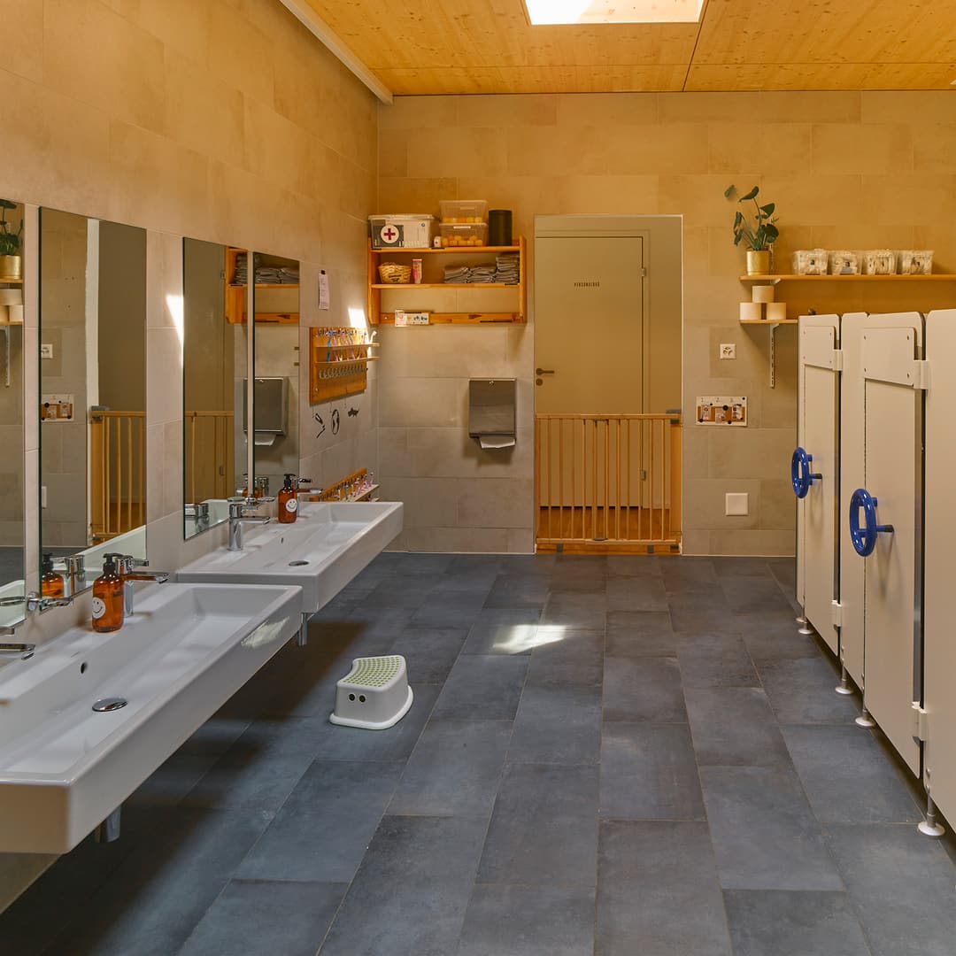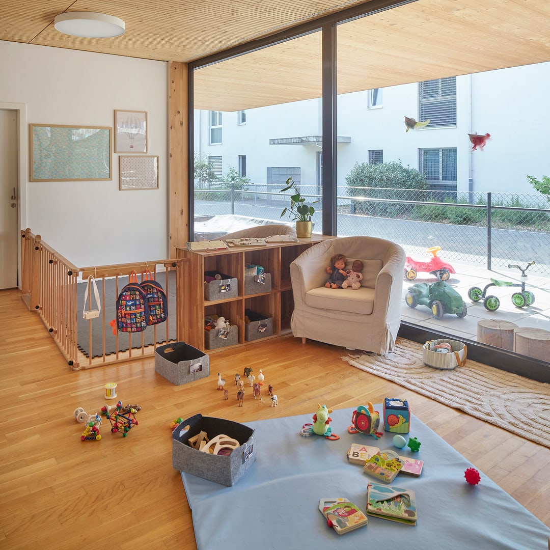 In ogni caso, l'edificio costruito come asilo nido non può essere trascurato. Si trova in posizione tranquilla nel cortile interno del nuovo complesso residenziale Stockfeld di Aegerten ed è facilmente raggiungibile in auto e con i mezzi pubblici, sia da Bienne che da Lyss. I bambini sono accolti in due gruppi separati per età e dispongono di ampi spazi per svilupparsi. C'è un'area protetta per i più piccoli, una stanza per il movimento e una per le costruzioni per i più grandi, oltre a una stanza per i giochi di ruolo. Gli ambienti sono luminosi, aperti e a misura di bambino. Il grande prato del giardino dell'asilo è attrezzato con una sabbiera, una casetta e una tenda da sole. Proprio accanto all'edificio, i bambini hanno accesso al parco giochi del quartiere con scivolo e torre di arrampicata. Di tanto in tanto, l'asilo di Stockfeld fa una gita nel vicino prato per osservare i cavalli.